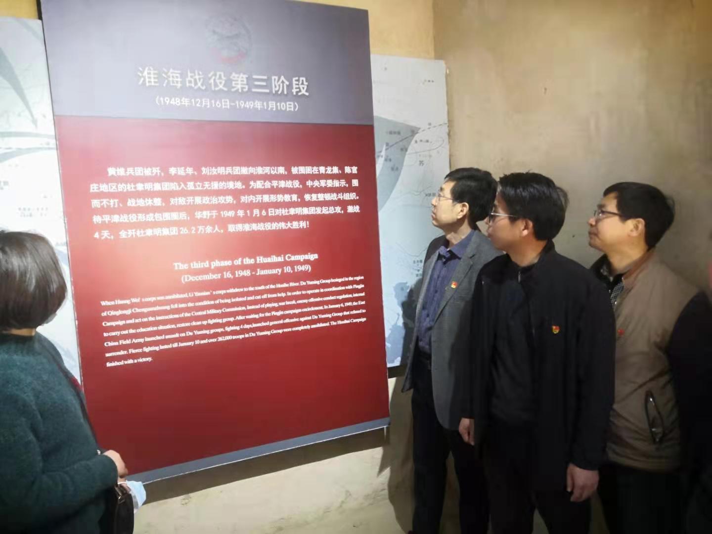 春游第一站来到萧县蔡洼淮海战役旧址,进行红色教育,接受革命洗礼。首先,陈述立带领大家重温入党誓词,加强党性教育。之后,一同参观了纪念馆,了解邓小平、粟裕等老一辈无产阶级革命家在蔡洼的革命活动和斗争历史。一组组珍贵的历史图片,一件件朴素的革命实物、一幕幕辉煌的战斗场景,无不见证着革命者的理想信念,彰显着伟人们崇高的品格和情操。