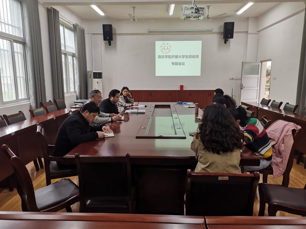 2021年4月27日,音乐学院在艺术楼一楼会议室开展大学生劳动周专题会议。音乐学院院长顾大海、党委副书记(临时负责)徐强、副院长陈燕秋、党委副书记王善虎以及全体辅导员参加会议。院长顾大海主持会议。