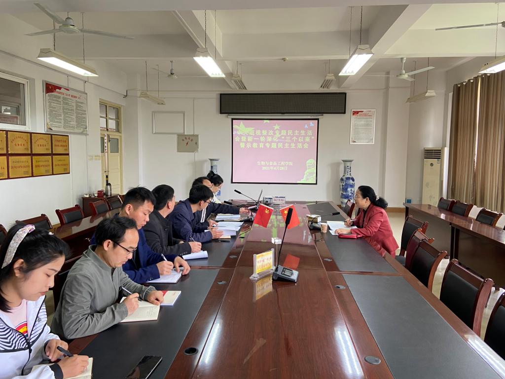按照校党委《大赢家体育高质量开好处级领导班子和处级党员干部中央巡视整改专题民主生活会暨新一轮深化“三个以案”警示教育专题民主生活会的通知》要求,2021年4月28日下午,生工学院召开了专题民主生活会,会议由学院党委书记赵亮主持,大赢家体育党委组织部部长陈啸吟参加并进行了点评,副院长张兴桃、学院科级干部、支部书记参加了本次民主生活会。