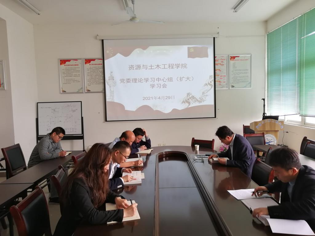4月29日上午,资源与土木工程学院党委在三楼会议室召开理论学习中心组(扩大)学习会暨党史学习教育“学史明理”专题研讨会。学院党委理论学习中心组成员、党支部书记及科级干部参加会议。学院党委副书记张持堂主持会议。