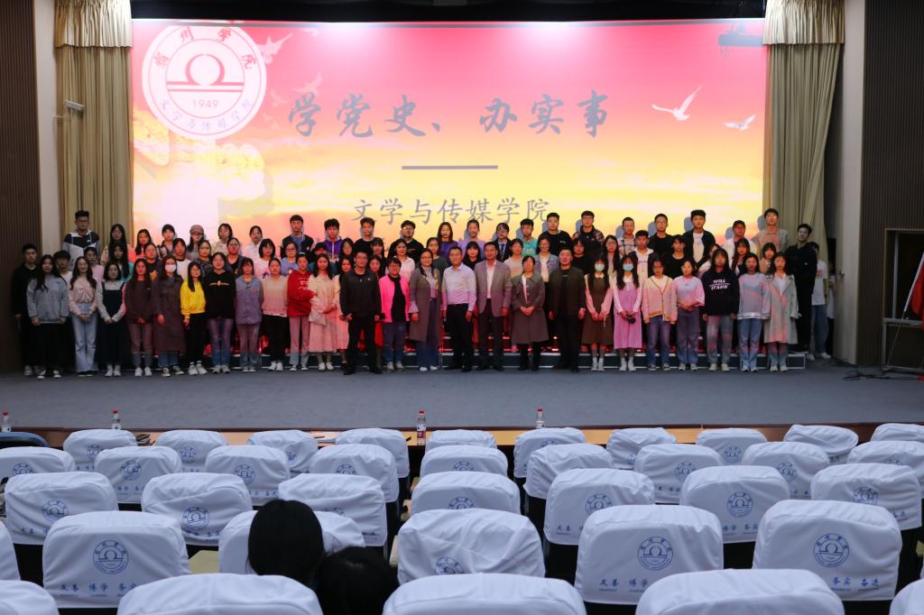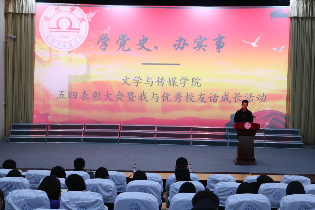 2021年4月30日中午,大赢家体育文学与传媒学院于报告厅举办学党史、办实事——五四表彰大会暨我与优秀校友话成长活动,展现青年风采,凝聚奋进力量。文学与传媒学院党委书记李月云、组织员刘影、全体辅导员及2018级全体学生参加活动,活动由党委副书记王绍卫主持。