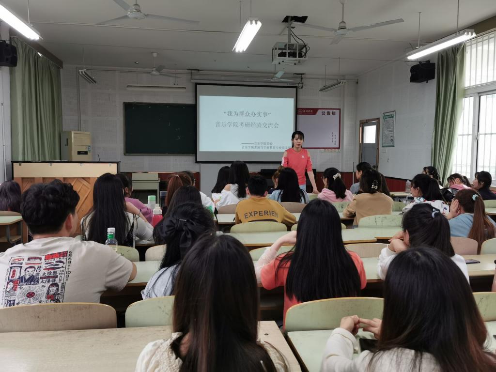 为扎实推进党史学习主题教育,深入开展“我为群众办实事”实践活动,推动“党建+学风建设”工作,进一步提高学生的考研热情,明确考研目标,掌握相关考研技巧,了解更多考研信息,2021年5月13日,音乐学院举办“考研经验交流会”,本次活动由音乐学院党委主办,表演与学前教育专业学生党支部承办。