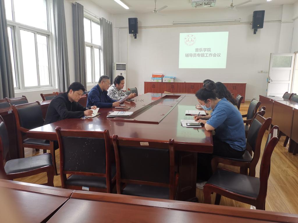 2021年5月19日, 音乐学院在艺术楼一楼会议室召开辅导员专题工作会议,院长顾大海、党委副书记(临时负责)徐强、党委副书记王善虎以及全体辅导员参加此次会议。本次会议由徐强书记主持。