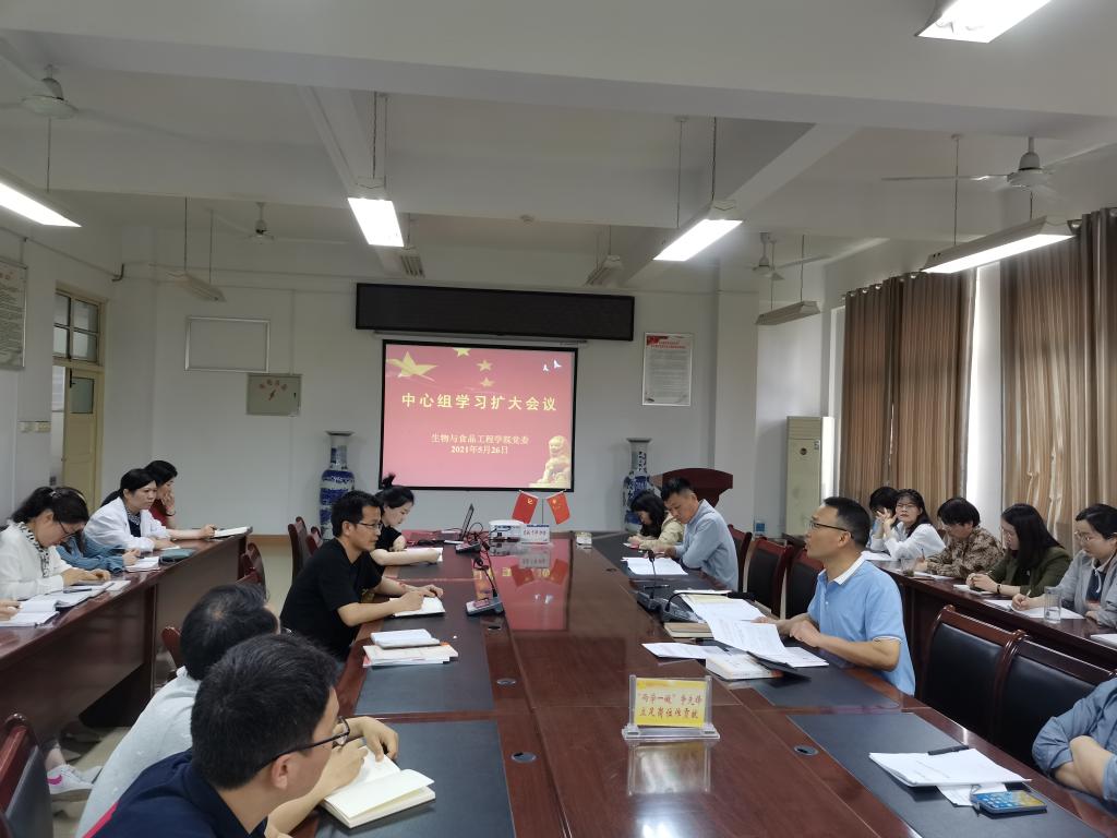 5月26日下午,生工学院在实验楼A206召开中心组学习扩大会议,会议由学院党委书记赵亮主持,中心组成员、各党支部书记、教研室主任参加会议。