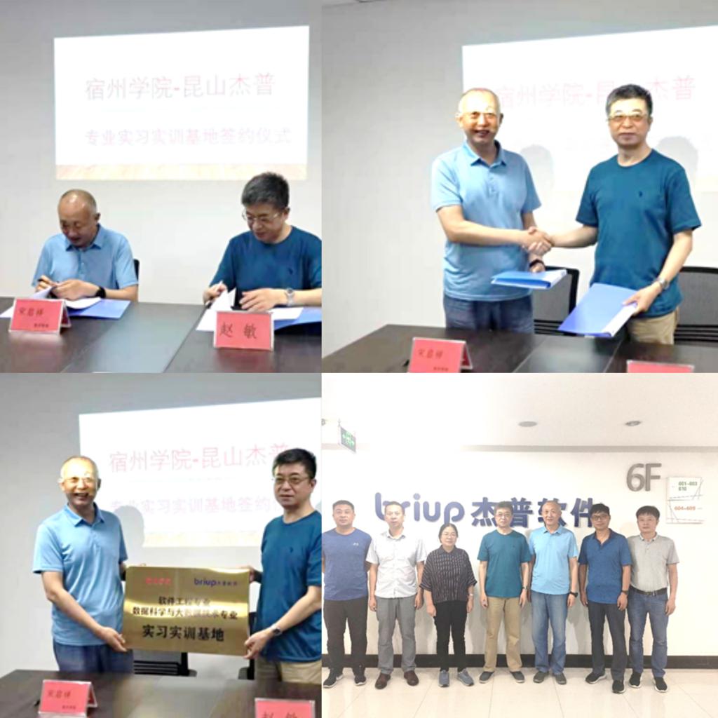 6月17日下午16:00,考察组一行来到了位于昆山的昆山杰普软件科技有限公司,受到了公司董事长赵敏、市场部经理齐俊的热烈欢迎。校企双方就共建“智能软件产业学院”、课程嵌入、专业实习实训、师资培训、课程共建等方面进行了深入交流并达成合作意向。随后,校企双方签署了专业实习实训基地共建协议,并共同为“大赢家体育软件工程专业实习实训基地”和“大赢家体育数据科学与大数据技术专业实习实训基地”揭牌。
