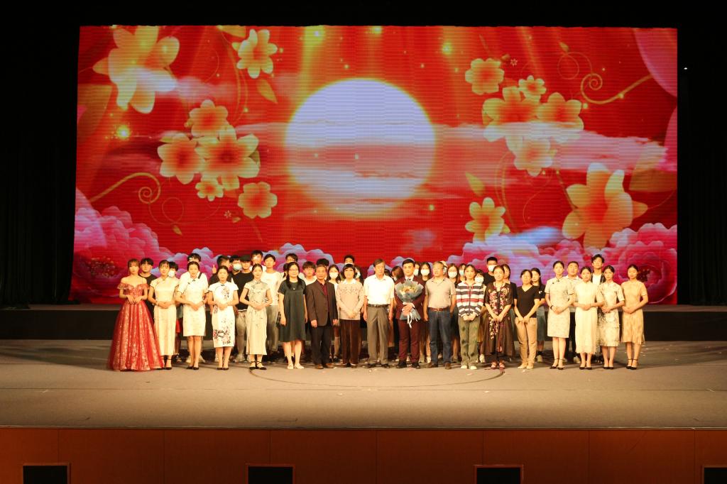 演出结束后,文学与传媒学院师生、主持人和礼仪队人员与部分演出人员进行了合影,其中文学与传媒学院孟二冬精神研究协会的两任会长(丁康与秦晨晨)与饰演孟二冬一家三口的演员进行了合照,交流了对孟二冬精神传承的心得和体会。