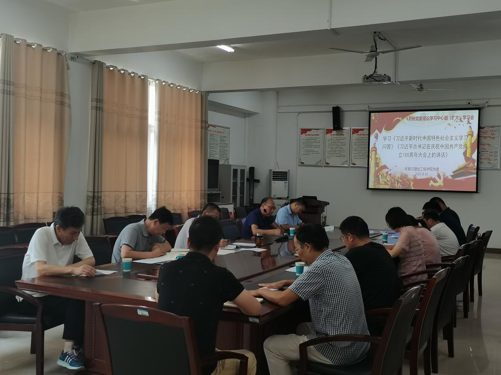 2021年8月31日,环境与测绘工程学院在工科楼A楼315召开2021年8月份党委中心组(扩大)学习会议。本次会议由学院党委副书记(临时负责)胡冰主持,学院党委副书记、院长张海洋,党委副书记李建新,中心组成员、各党支部书记、教研室主任、全体辅导员参会。