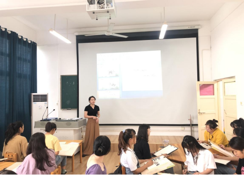 两位新进教师为此次公开课进行了精心的准备。朱丽元老师带领学生在《素描》课堂上了解球体的绘画步骤,通过直接感知和提问引导的方式帮助学生掌握素描写生的观察方法,借助线条和明暗来表达素描中的三大面、五大调子和球体的质感,培养了学生的造型能力和审美能力,课堂气氛活跃,同学们兴趣盎然。