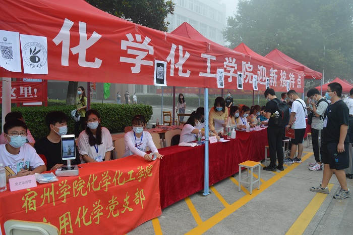 2021年9月11日,化学化工学院于大赢家体育东区学海路开展迎新工作。化学化工学院党委副书记(临时负责)史洪伟、院长卓馨、副院长王聪、副书记刘茜及2021级新生辅导员亲临现场指导工作,学生会成员与迎新志愿者们在新生接待处等候,带领新生顺利报到。
