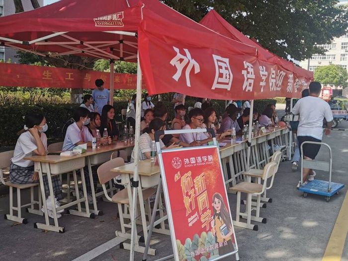 9月12日,阳光明媚。早上六点半,外国语学院迎新工作领导小组带领着学生干部和志愿者们早早守候在迎新接待点,有条不紊地展开迎新工作,期待着125位来自大江南北的新同学。