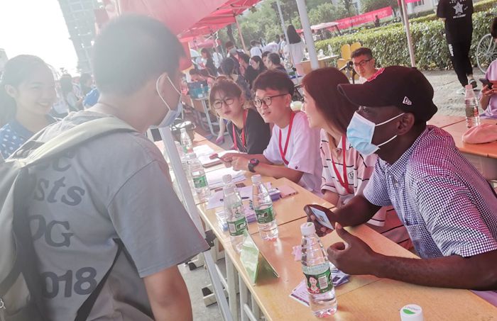 外国语学院党委副书记(临时负责)郝景东提前召开了迎新工作布置会,细化了迎新工作方案,现场邀请了外教Michael老师到现场与新生们进行英语互动、互致问候。外院分团委书记宋皓和辅导员余阳策划准备了各种外院的宣传材料,介绍外院发展的光辉历程和近年来团学活动的亮点。数十名志愿者被分配在新生接待处、注册处等多个迎新点,大家各司其职,尽心为新生提供服务。学校门口设置了外国语学院指引点,并有工作人员为新生指引方向。新生进校后志愿者们积极帮助他们搬运行李,引导他们前去注册登记。志愿者们与新生提前建立了联系,采取一对一接新生服务,对新生提出的问题给予耐心解答,让新生感觉到外国语学院大家庭的温暖。新生们来到迎新工作站,完成注册后就分别与外教Michael开始了互动,外教的风趣幽默缓解了新生的紧张情绪,活跃了现场的气氛。