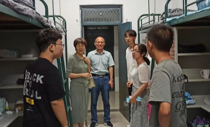 宿舍是学生学习生活的重要场所,是大学教育的重要阵地,外国语学院长期以宿舍文化建设为抓手,坚持“五育”并举,着力构建“三全育人”工作体系。新生入学报到的第一天傍晚,学生工作团队在院党委副书记(临时负责)郝景东和院长张雁凌的带领下深入2021级新生宿舍了解情况,推进养成教育,培养学生良好的生活习惯,加强宿舍文化建设,优化良好的育人环境。