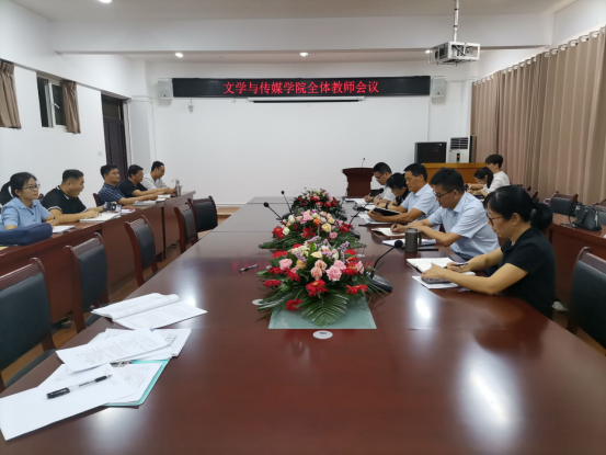 9月15日下午2:30,文学与传媒学院在东教A303召开全体教师工作会议,党委书记杨文艺,党委副书记、院长张德岁,副院长李娟,副院长满建,副书记刘影及全体教师参会。会议由张德岁主持。