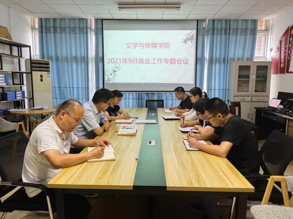 为扎实推进学院就业工作,规范、有序、高效做好就业指导服务,9月17日下午,文学与传媒学院召开就业工作专题会议,会议由文学与传媒学院党委书记杨文艺主持,学院党委副书记刘影及全体辅导员参加了会议。