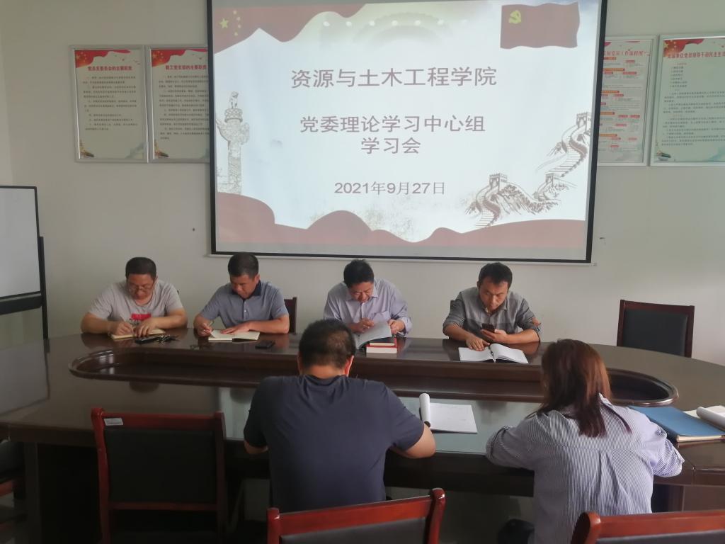 9月27日下午,资源与土木工程学院党委在三楼会议室召开理论学习中心组(扩大)学习会,学院党委理论学习中心组成员、党支部书记、科级干部参加学习。学院党委书记张持堂主持会议。