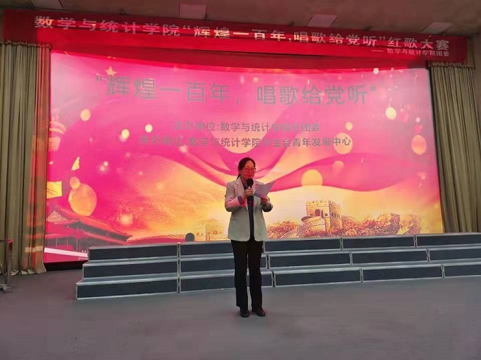 为庆祝中国共产党成立100周年,推动党史学习教育持续深化,充分发挥艺术教育在党史学习教育中的重要作用,激发青年奋发逐梦的活力,数学与统计学院于10月13日下午13:30在教学楼报告厅举行“青春告白祖国”主题系列活动——“ 辉煌一百年,唱歌给党听”红歌合唱比赛。20级与21级8个团支部参加了比赛。校团委书记凌峰、数统学院党委副书记(临时负责)陈攀峰、副院长(临时负责)徐秀荣、党委副书记徐依俭、副院长武以敏、副院长李耀红、校团委老师高歌、分团委书记刘静,以及全体辅导员、各党支部书记莅临比赛现场,音乐学专业学生担任本场比赛评委。