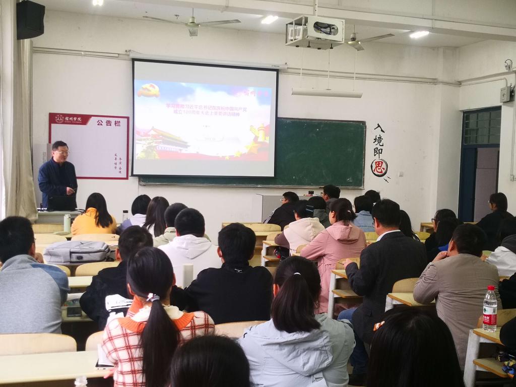 2021年10月21日下午,校党委委员、副校长张英彦在工科楼A106教室为资源与土木工程学院师生作学习贯彻习近平总书记“七一”重要讲话精神专题宣讲报告,学院教师代表、学生党员、入党积极分子代表及部分2021级新生参加报告会。