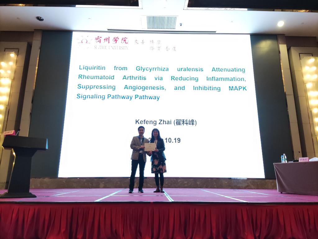 2021年10月18日-20日,由国际食物营养与安全协会、欧洲植物化学会和亚洲植物化学会共同主办,南昌大学和西班牙维戈大学共同承办的第五届医药与食品中的植物化学物质国际会议(5-ISPMF)在南昌召开。大会采取了线上直播和线下学术报告相结合的方式进行,线上会议从2021年8月25日-9月1日,线下会议10月18-20日在南昌举行,正式会议共10天。生物与食品工程学院翟科峰教授应邀参加会议,并邀请作题为“Liquiritin from Glycyrrhiza uralensis attenuating Rheumatoid arthritis via reducing inflammation, suppressing angiogenesis, and inhibiting MAPK signaling pathway”的学术报告。
