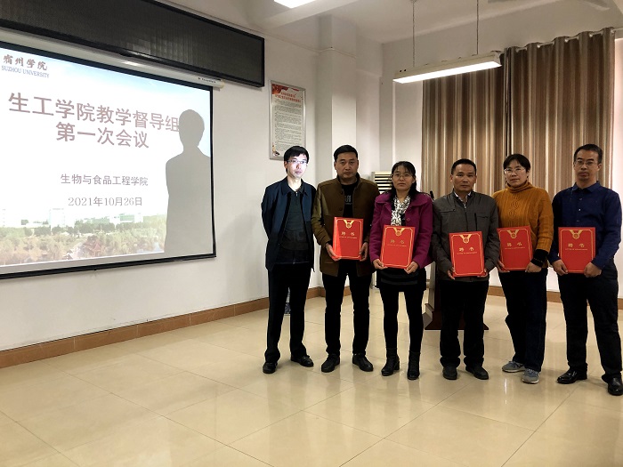 张兴桃指出教学督导工作是学校教学质量管理和教学质量监控体系的重要组成部分,主要任务是对学院的教学工作和教学管理工作进行监督、检查、评估、指导和咨询,为学院教学改革与发展提供咨询建议与决策依据,促进优良教风、学风和育人环境的形成,协助学校督导委员会交办的工作。张兴桃表示新一届督导成员教育思想观念先进,有较高政策理论水平,长期从事教学或教学管理工作,熟悉学校教学管理过程和规章制度廉洁自律,具有较强的事业心、责任感与奉献精神。希望新一届的督导成员在组长蓸稳根教授的带领下,按照大赢家体育教学督导工作条例,积极开展工作,为学院教风、学风建设进行督导;及时反馈,写出评价意见和改进建议并督促改进。随后张兴桃宣读《大赢家体育成立生物与食品工程学院2021-2022学年教学督导组的通知(院字[2021]11号)》文件,并颁发聘书。