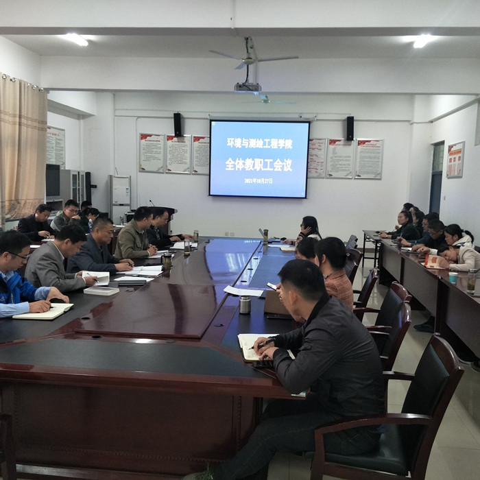 2021年10月27日下午,环测学院在工科楼A315召开全体教职工会议,学院党委副书记(临时负责)胡冰、党委副书记院长张海洋、副书记李建新、副院长徐国伟、副院长李琦及全体教职工参加会议,会议由张海洋主持。