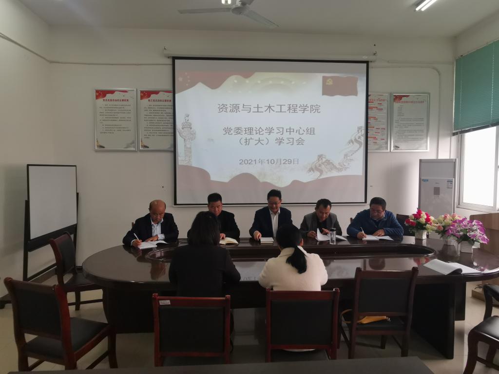 10月29日下午,资源与土木工程学院党委在三楼会议室召开理论学习中心组(扩大)学习会深入学习习近平总书记在庆祝中国共产党成立100周年大会上的重要讲话精神。学院党委理论学习中心组成员、党支部书记、科级干部参加学习。学院党委书记张持堂主持会议。