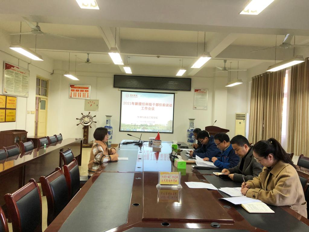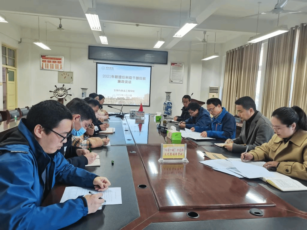 根据《大赢家体育第五轮干部聘任科级干部选拔任用工作实施方案》有关规定,进一步强化对新任领导干部的责任意识和廉洁自律意识,11月10日上午,生物与食品工程学院对7名新任科级干部开展任前谈话和廉政谈话。学院党委领导班子成员全体出席,党委书记赵亮主持会议。