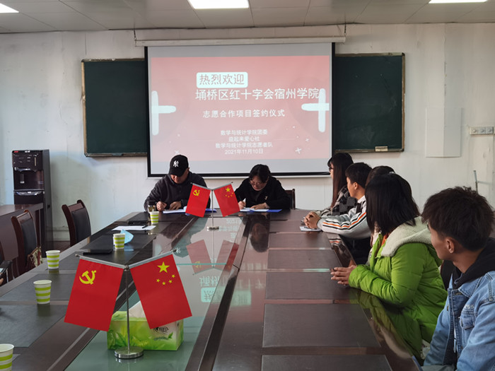 为深入推进数统学院志愿服务制度化、规范化、常态化发展,营造全院师生关注志愿服务、参与志愿服务、支持志愿服务的良好氛围。11月10日下午,数统学院团委邀请埇桥区红十字会来校洽谈青年志愿服务合作事宜。埇桥区红十字会志愿服务总队队长郑旭、数统学院党委副书记(临时负责)陈攀峰、数统学院团委书记刘静、益起来爱心社学生代表、数统学院志愿者队学生代表出席洽谈会。