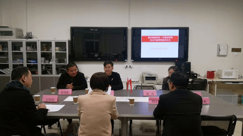 2021年11月10日,宿州格瑞学校校长刘攀一行来我院就深入开展校企合作共建工作并举行共建英语师范专业签约仪式。