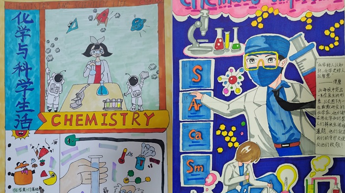 比赛过程中,每位同学都展示了精彩的海报风采,他们用自己独特的创造性思维,结合自己对于化学、对于环保的理解和认识,创造出一幅幅令人赏心悦目的艺术作品,充分展现了化学的魅力。在场的评委也为精彩的艺术作品打出了公平公正的分数。