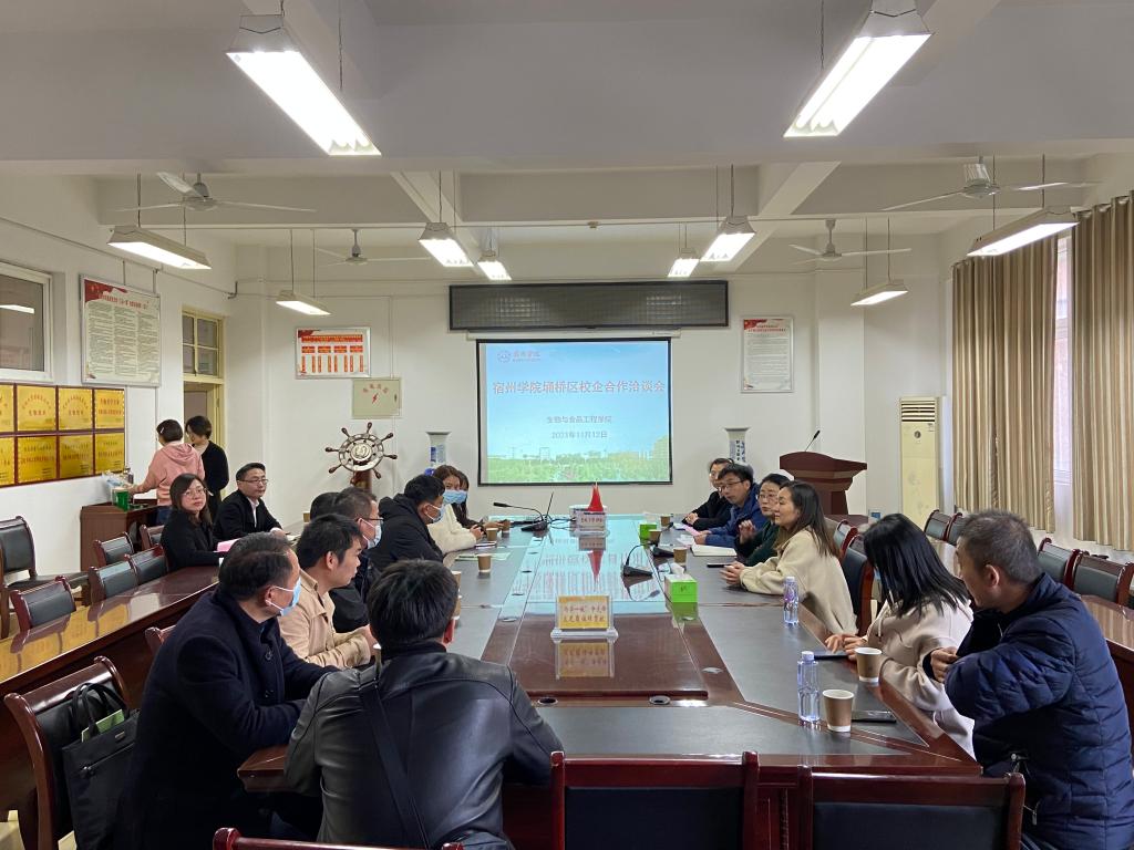 11月12日下午,宿州“4510”校地联合科创行动—大赢家体育埇桥区校地合作洽谈对接在我校举行。会后,安徽盛林环保科技有限公司、安徽肥地肥业有限责任公司、恒丰集团皖神公司、宿州市百汇食品有限公司、宿州市徽香源食品有限公司的企业代表前往生物与食品工程学院进行洽谈及现场考察。区委人才发展服务中心主任仇红影,科研处副处长张冰秋,生物与食品工程学院院长张兴桃和相关负责对接的博士等参加了洽谈会。
