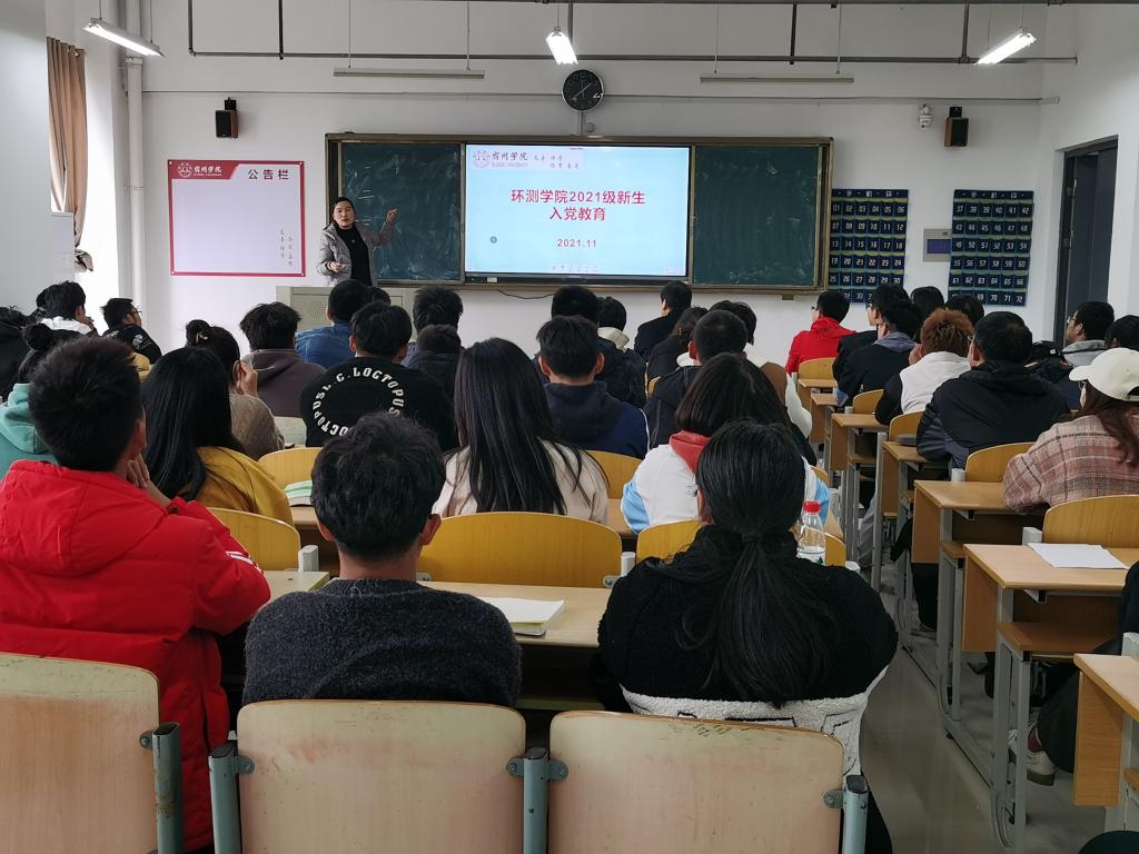 11月17下午,环境与测绘工程学院在实训楼A501召开2021级新生入党启蒙教育,环测学院地理与环境专业学生党支部书记陈影主讲,环测学院党委副书记、纪委书记李建新,2021级新生班辅导员刘甜及2021级新生代表参加。