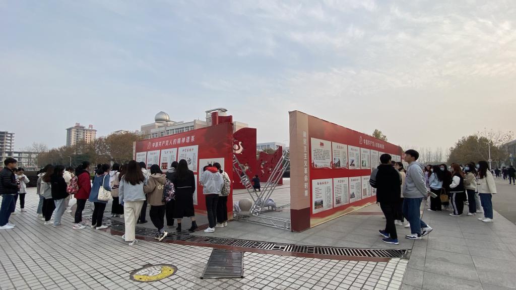 活动中,学生党员围绕图片展周围,有的拍照,有的交流,认真观看每一幅图片,阅读每一个文字。大家纷纷表示,这些不断丰富的精神谱系,给大家留下深刻的印象,也给大家深刻的启发,让大学生更清楚作为党员的责任和作为大学生的奋斗方向。