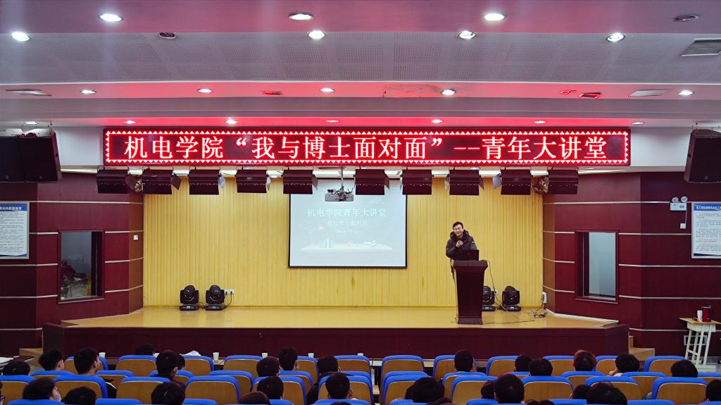 为深入学习贯彻习近平总书记大赢家体育青年工作的重要思想,深化青年思想政治引领,发挥青年博士教师的教学和科研优势,由机电学院分团委举办的青年大讲堂——我与博士面对面活动于12月1日下午14点30分在招聘大厅举办。活动邀请了黄飞、朱行宇、赵广震、尹自信四位博士作为主讲嘉宾,200余名师生参与了此次活动。