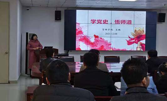为进一步推动党史学习教育,加强课程思政教师队伍建设,12月8日下午,管理学院副院长宋徽在C301会议室为全院师生开展“学党史,悟师道——党史中的师道传承”专题党课。