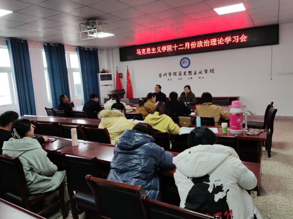 为深入学习党的十九届六中全会精神,提升马克思主义学院教师思想政治理论水平,12月15日下午,马克思主义学院在教学楼五楼会议室召开十二月政治理论学习会,院党委书记、院长刘超为全院教师讲授“学习贯彻十九届六中全会精神”专题党课。