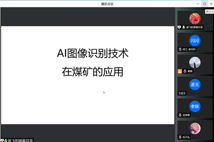 姜飞作了题为“AI图像识别技术在煤矿中应用”的报告,通过多维度、多角度的视频识别、分析及统计,及时发现隐患,保障煤矿安全生产制度落实,以期望进一步提升煤矿安全生产水平,降低煤矿安全事故,为安全生产提供决策支撑。具体架构基于ARM+DSP的架构,构建了主要进行各种智能分析算法的运算,智能分析服务器结构主要用于集中分析现有摄像机的图像,并重点介绍了进行不戴安全帽、区域入侵、堆煤、皮带跑偏等各种三违及隐患的识别。