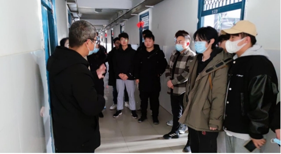 为深入了解疫情防控下学生学习生活情况,回应学生的合理诉求,确保学生能够以健康的身体和良好的心态迎接期末考试,12月21日中午,机电学院党委书记杨杰、副书记房爱东带领全体辅导员深入宿舍走访看望学生。