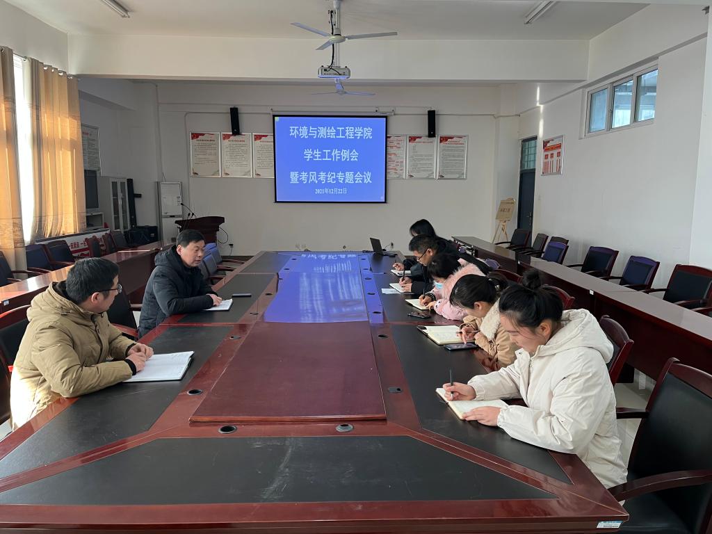 12月22日上午,环测学院在工科楼A315会议室召开2021年12月份第四次学生工作例会。学院党委副书记、纪委书记李建新,科研副院长李琦及全体辅导员、班主任参加会议。