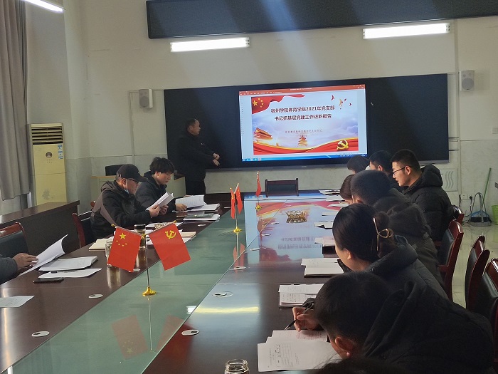2021年12月31日上午,体育学院党委召开2021年度党支部书记抓党建述职评议会,全体党委委员、党支部支委成员参加述职评议会。述职评议会由党委书记李高主持。