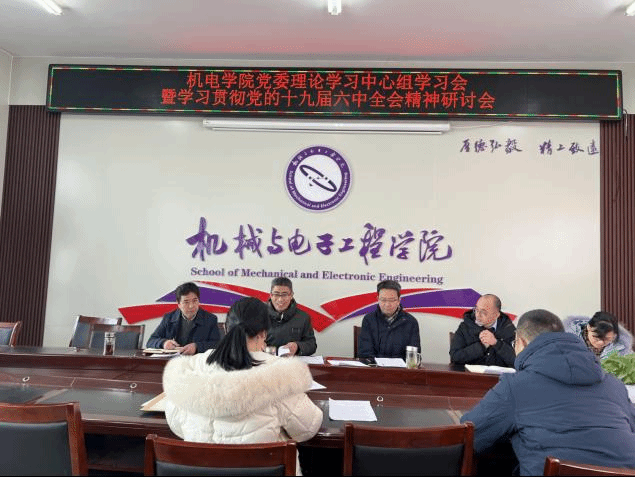 为科学谋划机电学院2022年重点工作,全面落实学院“十四五”年度建设任务,加快推进“申硕”及地方应用型高水平大学建设,深入学习宣传贯彻党的十九届六中全会精神。12月31日上午,机电学院在工科C楼三楼大会议室召开党委理论学习中心组学习会暨学习贯彻党的十九届六中全会精神研讨会,学院党委理论学习中心组成员参加,机电学院党委书记杨杰主持学习研讨。