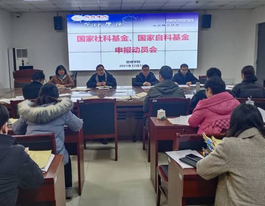韩传龙强调,做好国家两大基金的组织申报工作是全院科研工作的重中之重。全体教师要严格按照学校统一部署,围绕学校申硕目标和高水平大学建设计划,积极参与到国家基金的申报中来。管理学院将精心组织、多方谋划、落实各项措施,进一步汇聚合力、凝聚智力,提高教师申报国家社科基金和国家自科基金项目的积极性,全面提升项目申报的数量和质量。