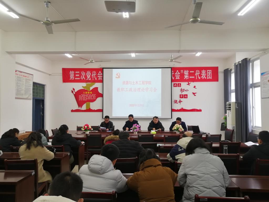 1月11日下午,资源与土木工程学院在会议室召开教职工理论学习会。党委书记张持堂主持会议,全体教职工参加学习。