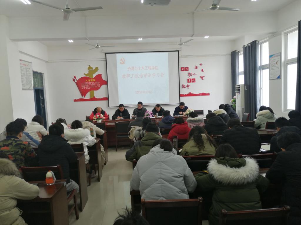 2月19日上午,资源与土木工程学院在工A402会议室召开教职工理论学习会。全体教职工参加学习,会议由党委书记张持堂主持。