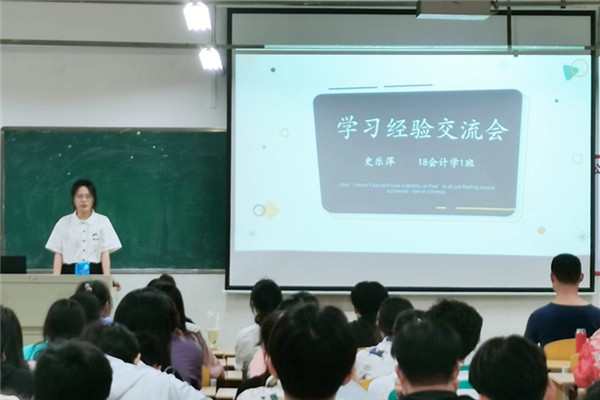 为进一步创新大学生教育学习形式,充分发挥优秀学生榜样引领作用,激发学生自主学习意识,商学院开展了系列活动。5月18日晚,商学院在实训楼B304教室举办了“商院榜样说”优秀学子经验交流会,20财务管理2班郜源、20国际经济与贸易李媛、18会计学1班史乐萍3名优秀学子进行了经验交流,学生事务管理科副科长孙茂顺老师到场指导,商学院2021级各专业学生参加了交流会。