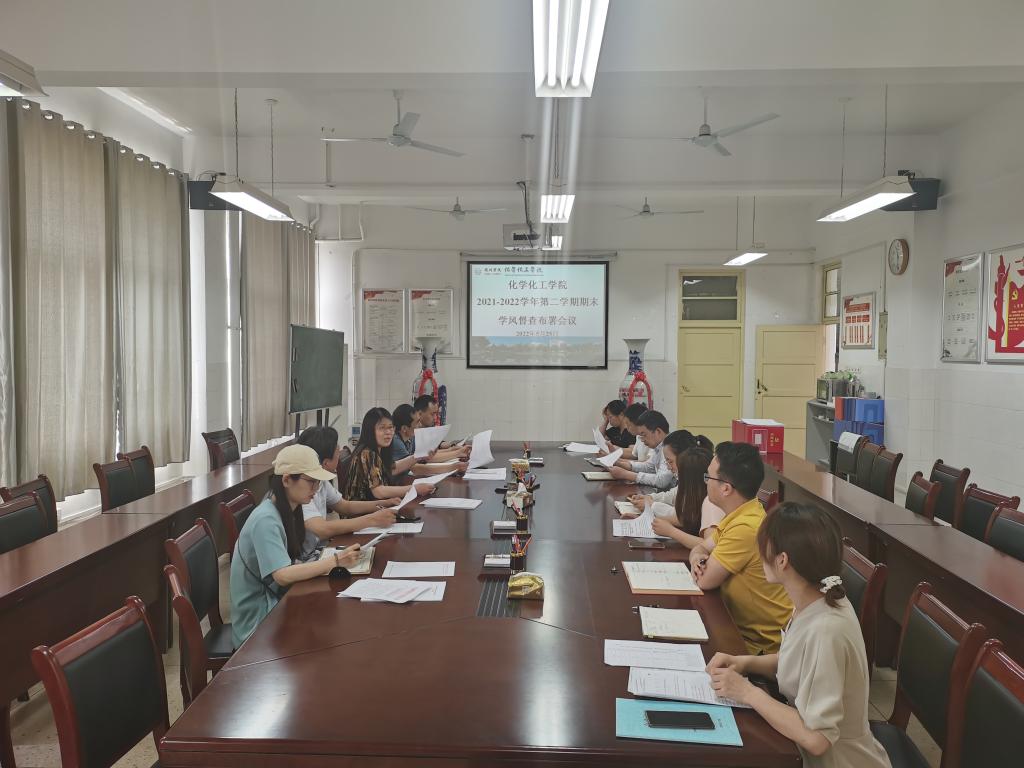 根据学校《大赢家体育开展2021-2022学年第二学期期末学风督查活动的通知》的要求,践行“笃学 笃行 笃信”的优良学风,5月25日,化学化工学院召开2021-2022学年第二学期期末学风督查布署会议,学院学风督查组成员参加会议,学院党委副书记(临时负责)史洪伟主持会议。