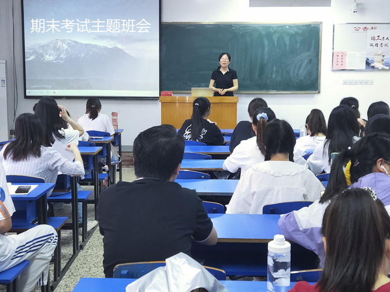 5月20日,刘影老师在20汉语言文学1班的期末考试主题班会中指出,离期末考试只有半个月左右的时间,同学们要集中精力,积极备考,杜绝作弊,以良好的精神状态迎接期末考试。