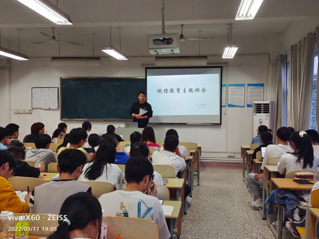 生工学院各班辅导员组织召开期末诚信考试主题班会。班会旨帮助学生树立良好的行为规范和优良的考试修养,建设学院良好的学习风气。在主题班会中,由学习委员进行朗读诚信考试承诺书,将考试作弊行为的处罚条例和学业影响为同学们一一言明,并鼓舞大家诚信考试、拒绝作弊,号召大家树立起集体与个人荣辱感。诚信考试承诺书宣讲完毕后,各班同学都需要在本班诚信考试承诺书上进行签名,表明自己诚信考试的决心。诚信考试主题班会既有利于学院良好学风的建设,同时对于学生优良品德的树立有着很好的帮助,考试作弊虽然看起来是一件小事,实则影响很大,因为一种不好的行为一旦有了开端,后续便很难止住,所以诚信考试不是一件容易的小事。