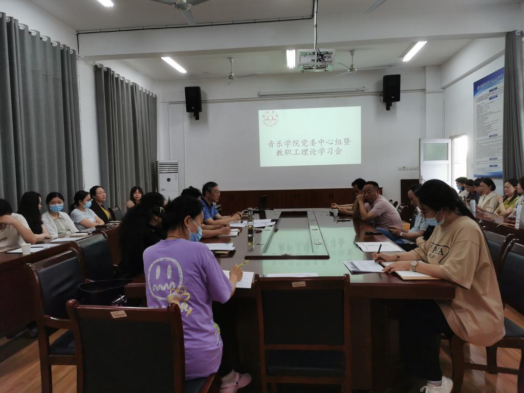 6月1日,音乐学院党委在会议室召开中心组暨教职工理论学习会。党委副书记(临时负责)徐强,音乐学院党委副书记、院长王善虎,党委副书记、纪委书记李小娜,副院长钦媛以及全体教职工参加了学习会,本次会议由徐强主持。
