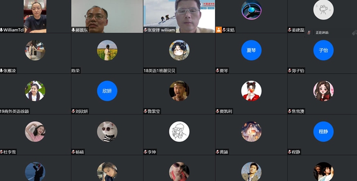 6月2日晚,外国语学院2003届英语专业毕业生,优秀校友唐传林以视频会议的形式为2022届和2023届毕业生做了一场题为《风力掀天浪打头,只须一笑不须愁》的专题报告。外国语学院党委副书记(临时负责)郝景东主持汇报会,院长张雁凌、副书记张亚锋和辅导员团队成员参加会议,2022届和2023届毕业生近两百人参加了线上报告会。
