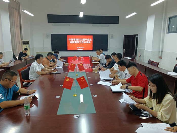 为了确保2022届毕业生返校离校工作安全、有序、平稳的开展,6月10日,体育学院召开2022届毕业生返校离校工作协调会。院全体党委委员,各教研室、科室负责人,各年级辅导员、部分教师参加会议,会议由李高主持。